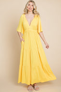 Culture Code Backless Plunge Half Sleeve Tiered Dress