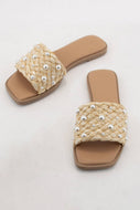 ENGINE PEARL DECOR RAFFIA WOVEN UPPER SLIDE SANDAL: NATURAL RAFFIA / 5.5