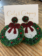 Beaded Christmas wreath earrings