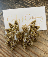 Gold Beaded with Blue and White Cross set of5 stretch bracelets