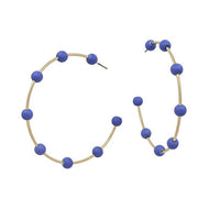Gold Hoop with Royal Blue Color Coated Metal Beaded Accents 2" Earring