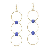 Gold Triple Drop Circle with Royal Blue Beaded Accents 2" Earring
