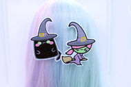 Kawaii Witch And Black Cat Hair Clip Set