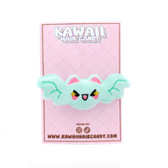 Kawaii Bat Plush Hair Clip: Mint