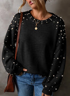 Pearl Detail Round Neck Long Sleeve Sweater