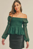 Peplum Round Neck Flounce Sleeve Blouse