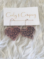Pink Leopard Heart Acrylic Earrings