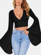 Plunge Flare Sleeve Cropped Top