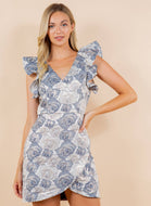 CD01712-Ruffle Trim Wrap Dress: S / WHITE