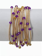 Set of 12 Gold Wired Stretch Bracelets with Purple and Yellow Gameday Crystal Accents, Best Seller!