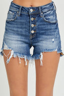 RISEN Raw Hem Distressed High Rise Denim Shorts