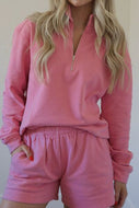 Double Take Full Size Texture Flounce Sleeve Top and Drawstring Shorts Set