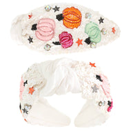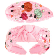 Halloween Pumpkin Jeweled Top Knotted Headband : Pink