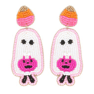 Trick or Treat Ghost Beaded Dangle Earrings: Pink