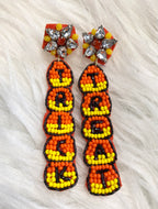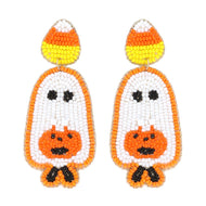 Trick or Treat Ghost Beaded Dangle Earrings: Orange