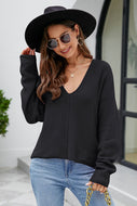 Button-Up V-Neck Dropped Shoulder Cardigan